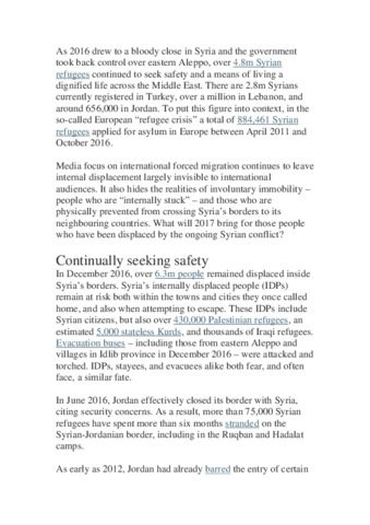 | Title: | Syrian refugees in Turkey, Jordan and Lebanon face an uncertain 2017 |