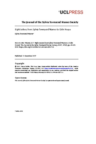 Title: | Eight Letters from Sylvia Townsend Warner to Colin House |