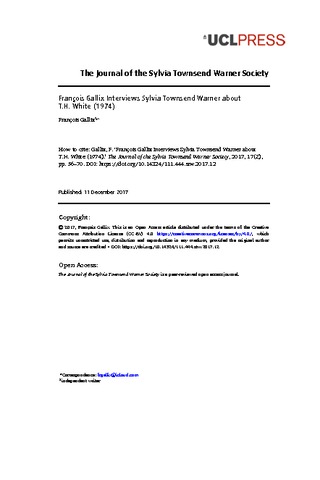 Title: | François Gallix Interviews Sylvia Townsend Warner about T.H. White (1974) |