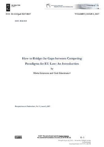 [Perspectives on Federalism] How to Bridge the Gaps between Competing Paradigms for EU Law An Introduction.pdf - Published Version Download (425kB) | Preview |