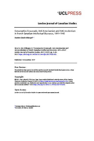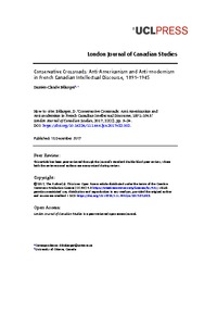 Title: | Conservative Crossroads: Anti-Americanism and Anti-modernism in French Canadian Intellectual Discourse, 1891–1945 |