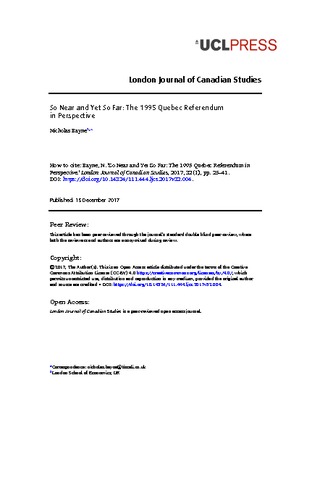 | Title: | So Near and Yet So Far: The 1995 Quebec Referendum in Perspective |