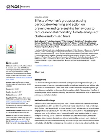 Title: | Effects of women's groups practising participatory learning and action on preventive and care-seeking behaviours to reduce neonatal mortality: A meta-analysis of cluster-randomised trials |