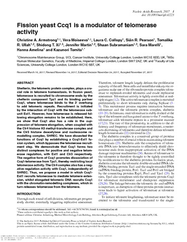 Title: | Fission yeast Ccq1 is a modulator of telomerase activity. |