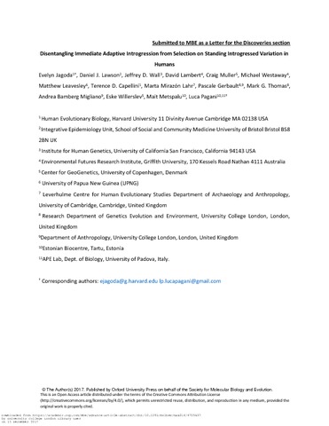 Title: | Disentangling Immediate Adaptive Introgression from Selection on Standing Introgressed Variation in Humans |