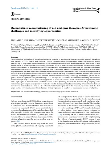Title: | Decentralized manufacturing of cell and gene therapies: Overcoming challenges and identifying opportunities |