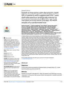 Switch to maraviroc with darunavir/r, both QD, in patients with suppressed HIV-1 was well tolerated but virologically inferior to standard antiretroviral therapy: 48-Week results of a randomized trial.