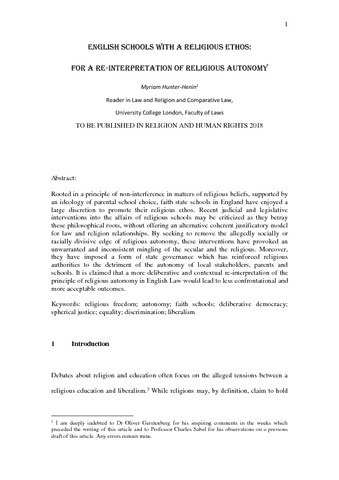 Title: | English Schools with a Religious Ethos: For a Re-Interpretation of Religious Autonomy |