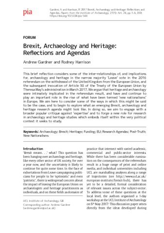 | Title: | Brexit, Archaeology and Heritage: Reflections and Agendas |
