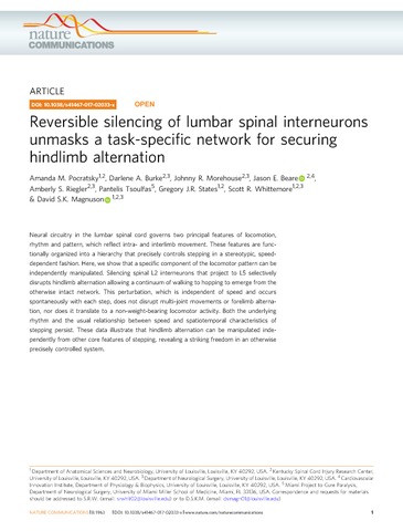 Title: | Reversible silencing of lumbar spinal interneurons unmasks a task-specific network for securing hindlimb alternation |
