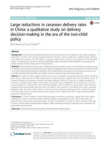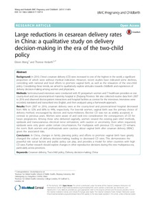 Title: | Large reductions in cesarean delivery rates in China: a qualitative study on delivery decision-making in the era of the two-child policy |