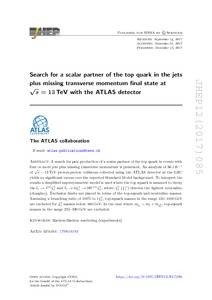 | Title: | Search for a scalar partner of the top quark in the jets plus missing transverse momentum final state at √s=13 TeV with the ATLAS detector |