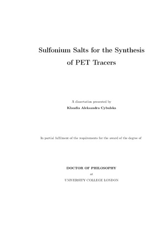 Title: | Sulfonium Salts for the Synthesis of PET Tracers |