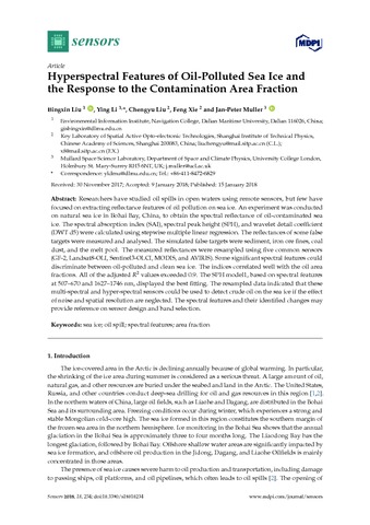 Title: | Hyperspectral Features of Oil-Polluted Sea Ice and the Response to the Contamination Area Fraction |