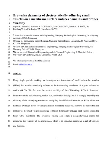 | Title: | Brownian Dynamics of Electrostatically Adhering Small Vesicles to a Membrane Surface Induces Domains and Probes Viscosity |