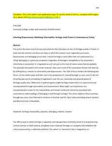 Title: | Inheriting dispossession, mobilizing vulnerability: Heritage amid protest in contemporary Turkey |