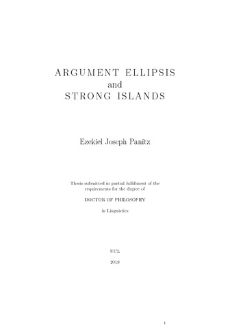 This thesis investigates two topics: (i) the distribution of argument ellipsis (AE) in languages that permit AE, and (ii) the status of strong islands (SIs). Regarding (i): The present thesis develops a novel account of the distribution of AE. According to this account, AE is subject to a locality constraint: in languages with AE, an argument may undergo AE only if it is local to V. Crucially, the definition of locality varies as a function of whether the language in question is VO or OV. In VO languages, an argument is local to V if and only if it is immediately preceded by V. In OV languages, an argument is local to V if and only if it is a sister of V or V’. With respect to OV languages, it is assumed, following Neeleman and Weerman (1999), that some OV languages base-generate external arguments (EAs) in [Spec, VP], whereas others base-generate EAs as adjuncts to VP. [Spec, VP] is local to V; the adjunct-to-VP position is not. Accordingly, the present account correctly predicts that AE-allowing OV languages fall into two classes: those that allow AE of EAs and those that do not. More significantly, it predicts which AE-allowing OV languages fall into which class. Those that generate EAs in [Spec, VP] allow AE of EAs; those that generate EAs as adjuncts to VP do not. The account of AE proposed here is argued for on the basis of two studies: one, a case study of AE in Brazilian Portuguese, a VO language; the other, a study of a variety of AE-allowing OV languages. Regarding (ii): it is generally held that SI-crossing movement is possible, provided some special step is taken (e.g., ellipsis of the island, insertion of a resumptive pronoun). This thesis argues, on the basis of reconstruction facts in Brazilian Portuguese, Hebrew, Norwegian, and Swedish, that SIs are absolute barriers to movement. Under no circumstance can movement take place out of an SI.