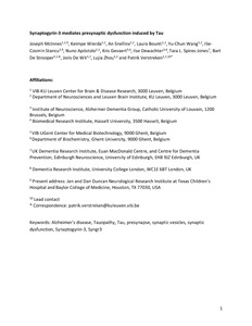 Title: | Synaptogyrin-3 Mediates Presynaptic Dysfunction Induced by Tau |