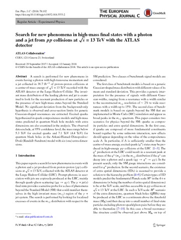 Title: | Search for new phenomena in high-mass final states with a photon and a jet from pp collisions at √s = 13 TeV with the ATLAS detector |
