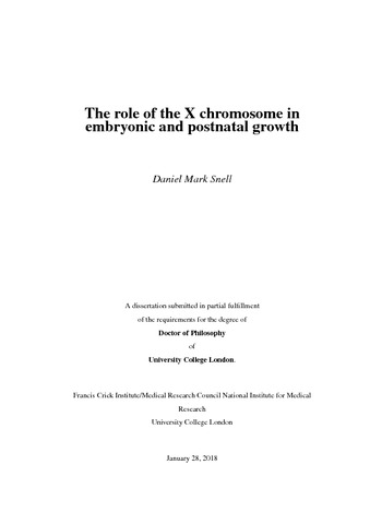 Title: | The role of the X chromosome in embryonic and postnatal growth |