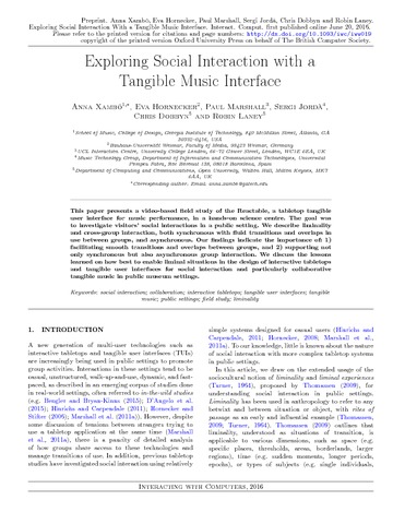 Title: | Exploring Social Interaction With a Tangible Music Interface |