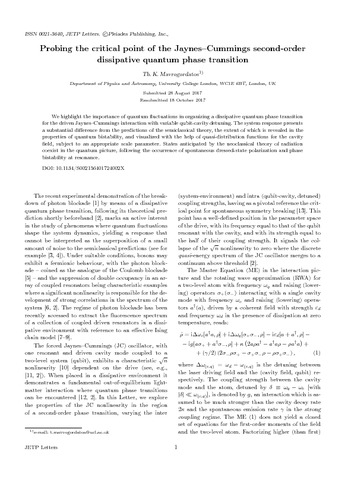 Title: | Probing the Critical Point of the Jaynes–Cummings Second-Order Dissipative Quantum Phase Transition |