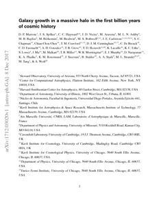 Title: | Galaxy growth in a massive halo in the first billion years of cosmic history |