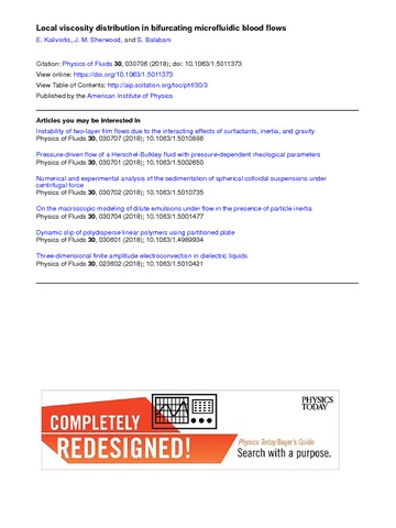 | Title: | Local viscosity distribution in bifurcating microfluidic blood flows |
