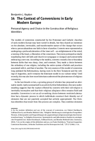 The context of conversions in early modern Europe: personal agency and choice in the construction of religious identities.