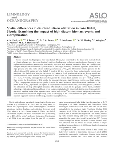 Title: | Spatial differences in dissolved silicon utilization in Lake Baikal, Siberia: Examining the impact of high diatom biomass events and eutrophication |