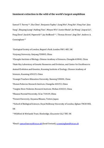 Title: | Imminent extinction in the wild of the world's largest amphibian |