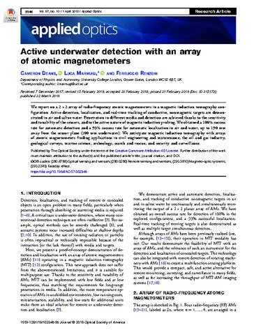 Marmugi_Active underwater detection with an array of atomic magnetometers_VoR.pdf - Published Version Download (1MB) | Preview |