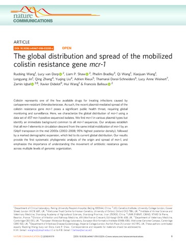 Title: | The global distribution and spread of the mobilized colistin resistance gene mcr-1. |
