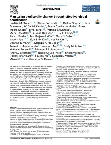 Title: | Monitoring biodiversity change through effective global coordination |