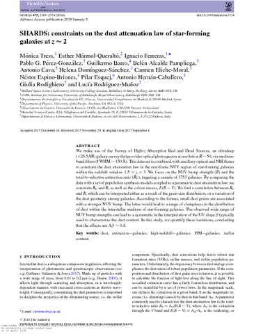 Title: | SHARDS: constraints on the dust attenuation law of star-forming galaxies at z ∼ 2 |