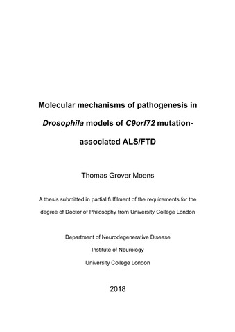 Title: | Molecular mechanisms of pathogenesis in Drosophila models of C9orf72 mutation associated ALS/FTD |