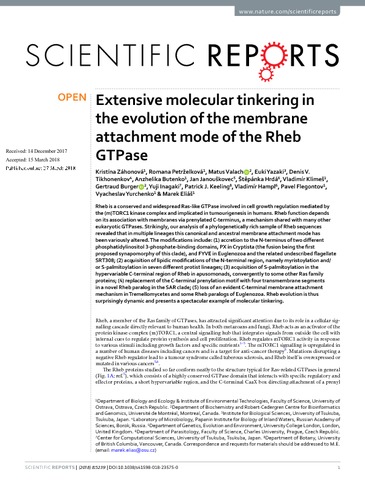 Title: | Extensive molecular tinkering in the evolution of the membrane attachment mode of the Rheb GTPase |