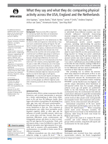 | Title: | What they say and what they do: comparing physical activity across the USA, England and the Netherlands |