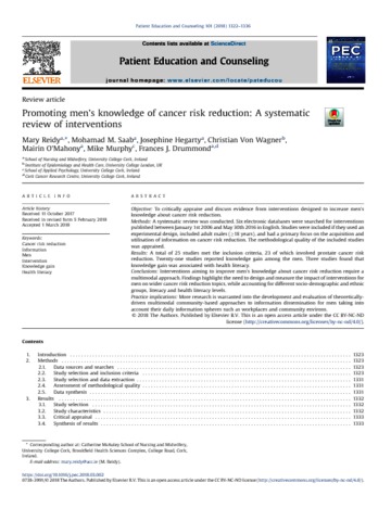 Promoting men's knowledge of cancer risk reduction: A systematic review of interventions.