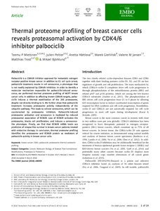 Title: | Thermal proteome profiling of breast cancer cells reveals proteasomal activation by CDK4/6 inhibitor palbociclib |