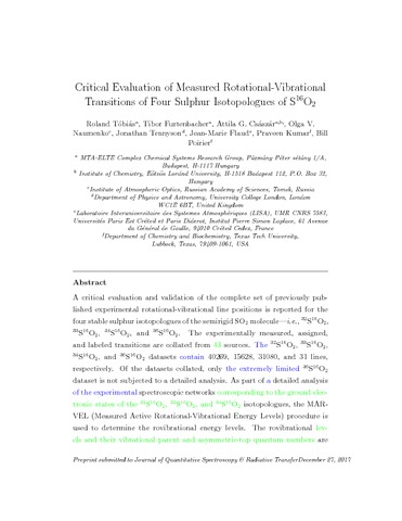 Title: | Critical evaluation of measured rotational-vibrational transitions of four sulphur isotopologues of (SO2)-O-16 |