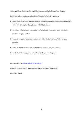 | Title: | History, politics and vulnerability: explaining excess mortality in Scotland and Glasgow |