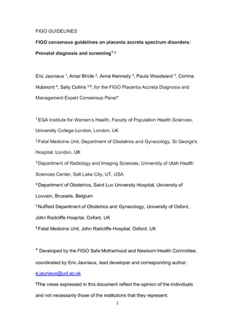 Jauniaux_FIGO consensus guidelines on placenta accreta spectrum disorders. Prenatal diagnosis and screening_AAM.pdf - Accepted Version Download (179kB) | Preview |