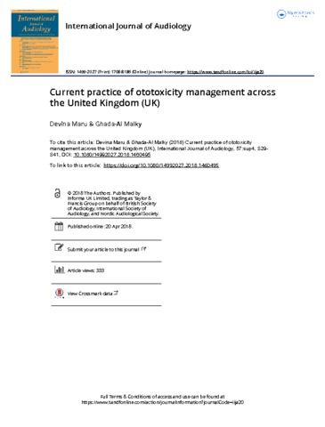 Title: | Current practice of ototoxicity management across the United Kingdom (UK) |