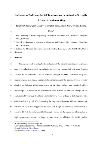 Influence of Substrate Initial Temperature on Adhesion Strength of Ice on Aluminum Alloy.pdf - Accepted Version Download (697kB) | Preview |