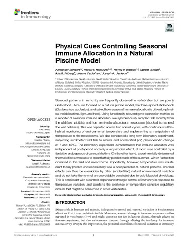 Title: | Physical cues controlling seasonal immune allocation in a natural piscine model |
