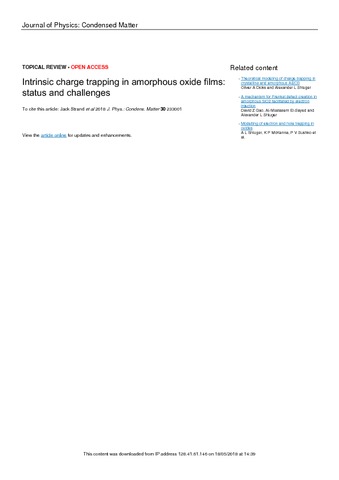 | Title: | Intrinsic Charge Trapping in Amorphous Oxide Films: Status and Challenges |
