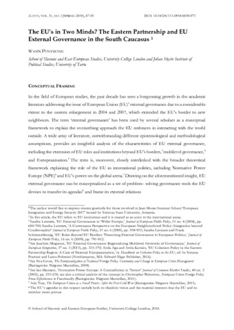 Title: | The EU’s in Two Minds? The Eastern Partnership and EU External Governance in the South Caucasus |