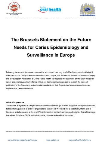 The Brussels Statement on the Future Needs for Caries Epidemiology and Surveillance in Europe.