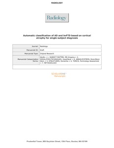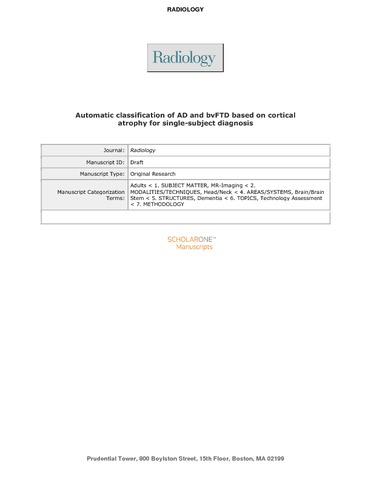 Alzheimer Disease and Behavioral Variant Frontotemporal Dementia: Automatic Classification Based on Cortical Atrophy for Single-Subject Diagnosis.